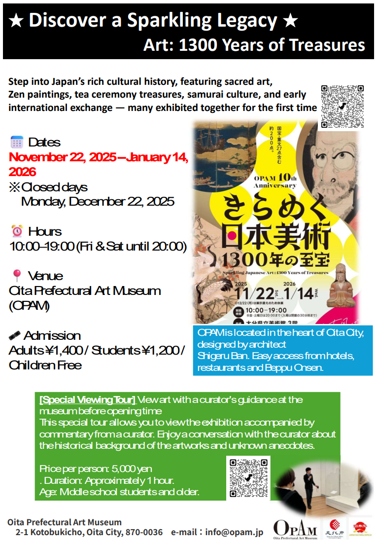 This is an announcement from the Oita Prefectural Art Museum (OPAM). If you are interested, please see the flyer and website below. We look forward to your participation.