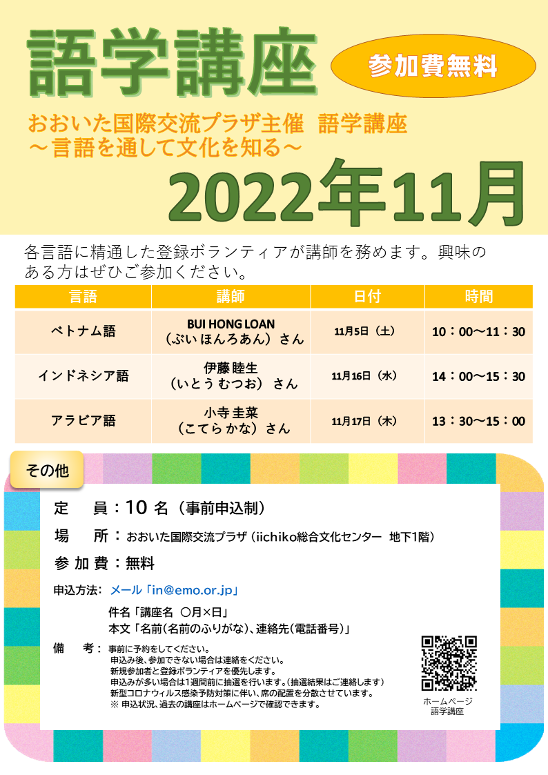 11月の語学講座~言語を通して文化を知る~を開催します。
