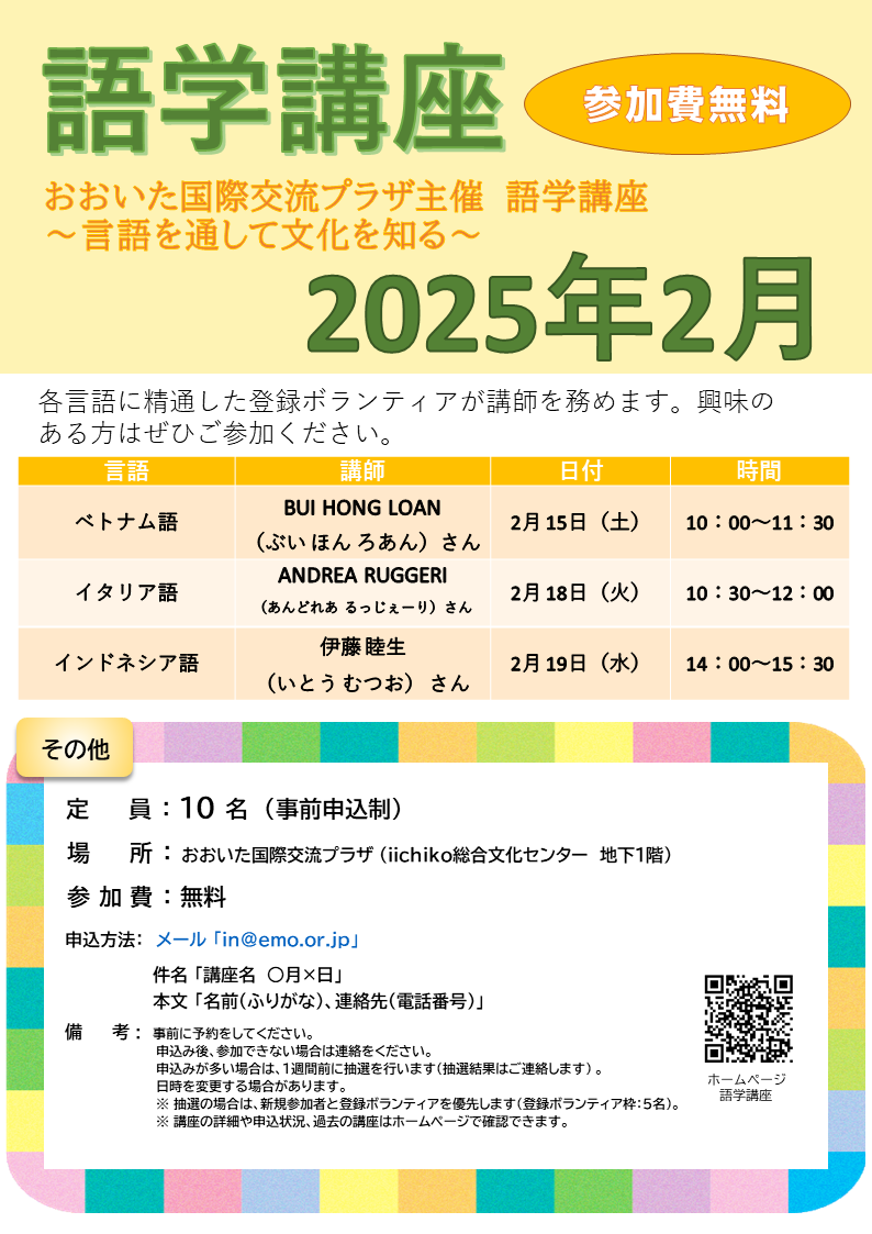 場 所:おおいた国際交流プラザ(iichiko総合文化センター 地下1階)