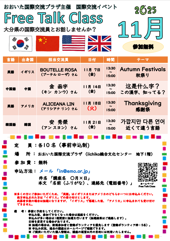 大分県国際政策課の国際交流員とお話しましょう♪♪