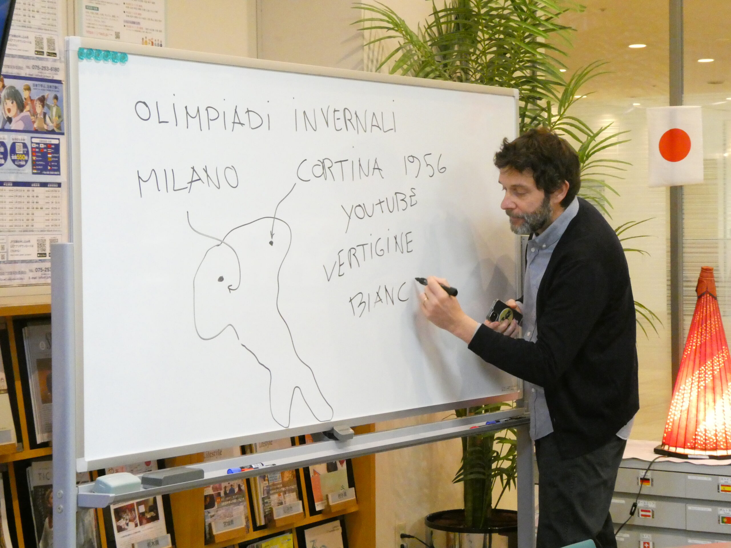 講座の後半は、「見る」を意味する2つの動詞vedereとguardareの違いについて、多くの例文を参照しながら、用法を学習しました。